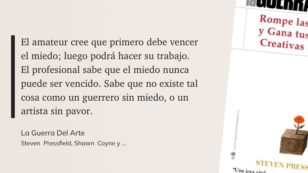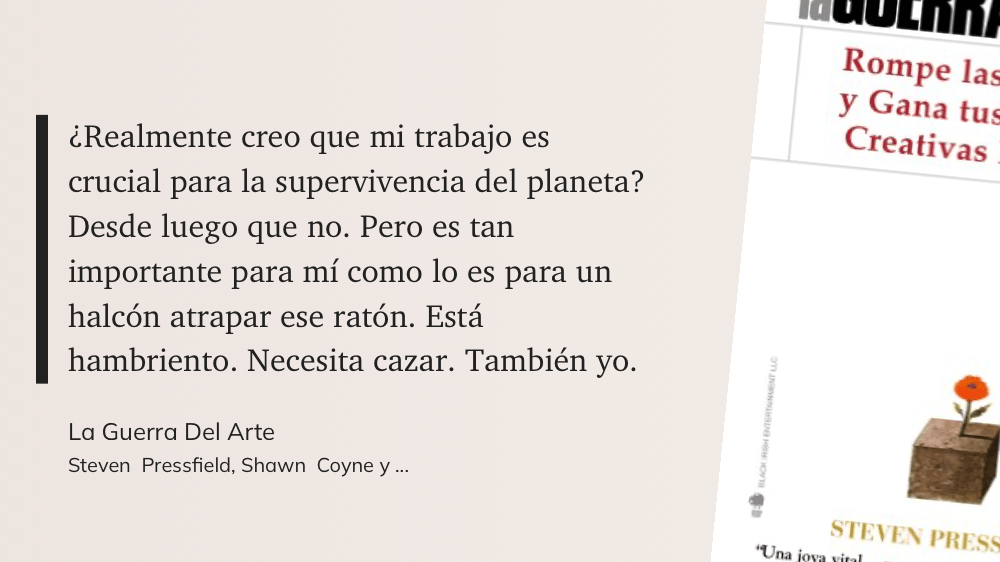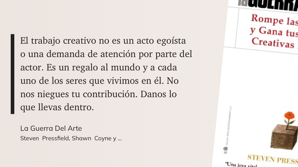 Lo especial en ese fragmento es ver cómo describe todas las razones que se dan las personas para no crear, como las reduce a simples excusas con soluciones sencillas. Perdí la cuenta de cuántas de esas situaciones me describían.