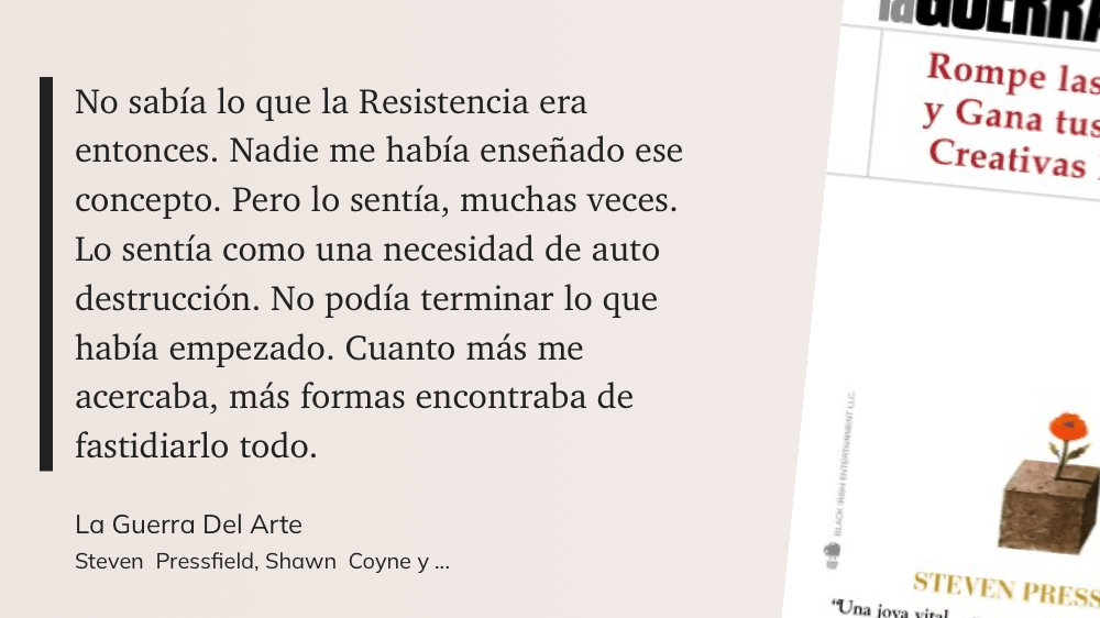 Procrastinación, pereza, mala suerte, mal clima, falta del equipo necesario… La Resistencia representa todo eso que evita que hagamos lo que debemos hacer. De eso trata todo el primer libro, definir y enmarcar lo que es La Resistencia.