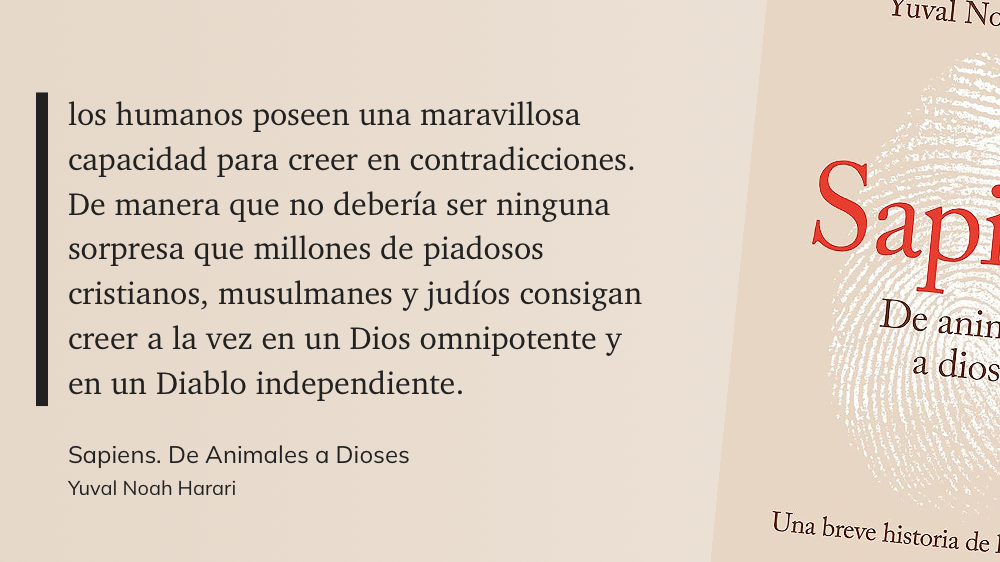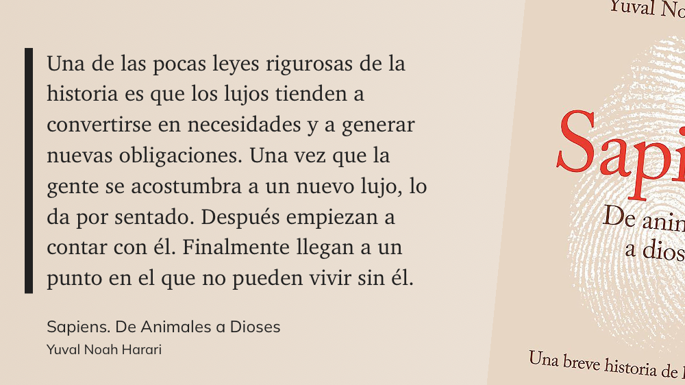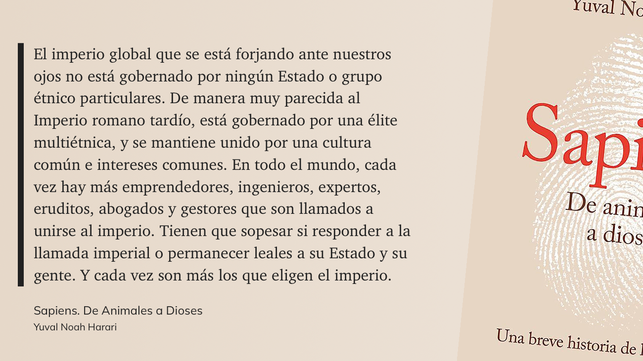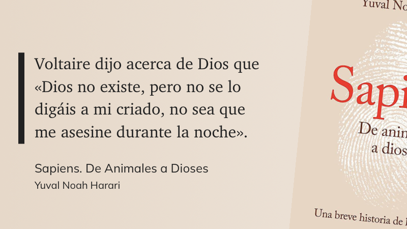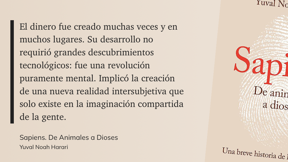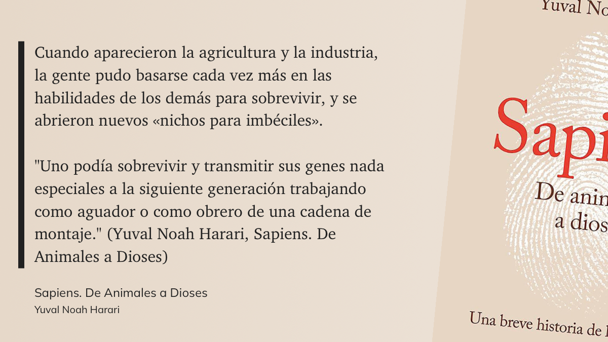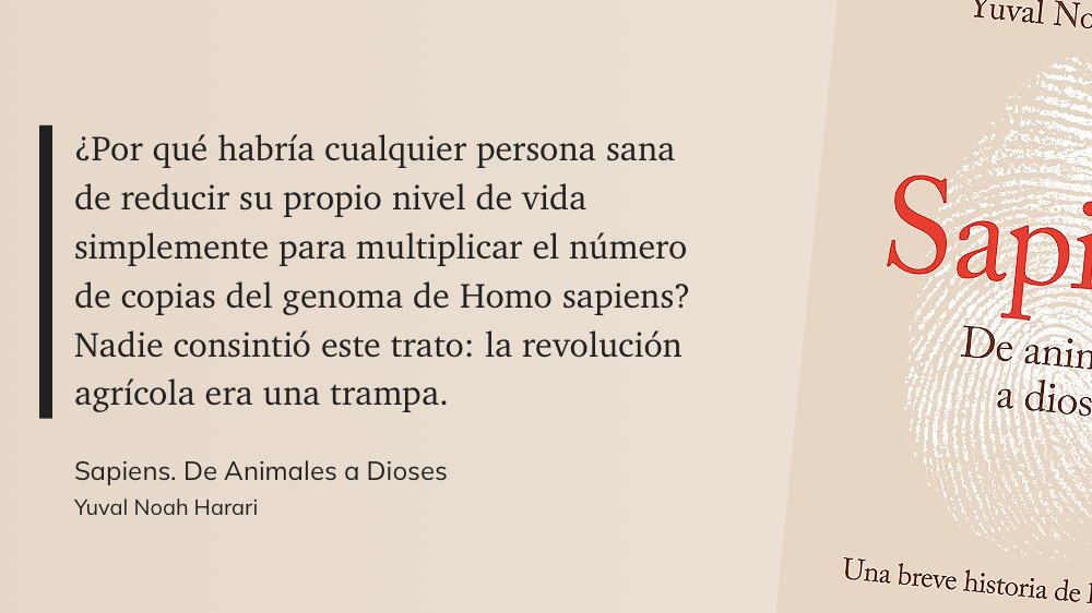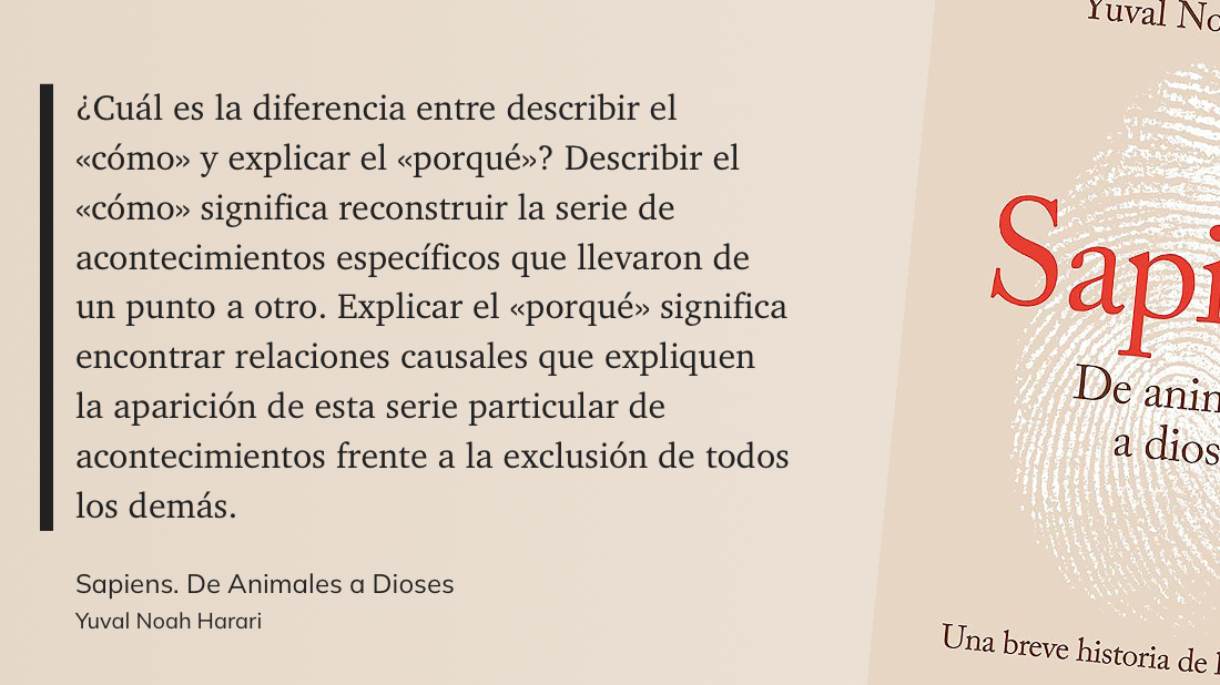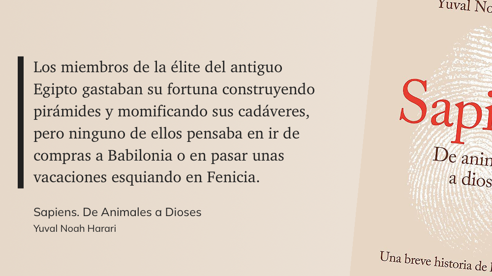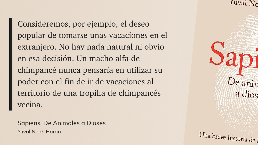 Sapiens, de animales a Dioses: Breve historia de la humanidad. Creo que el titulo es un poco auto explicativo. Es un relato desde los primeros días del ser humano, pasando por la actualidad y dando un pequeño vistazo imaginario a lo que podría ser el siguiente paso evolutivo. Fue uno