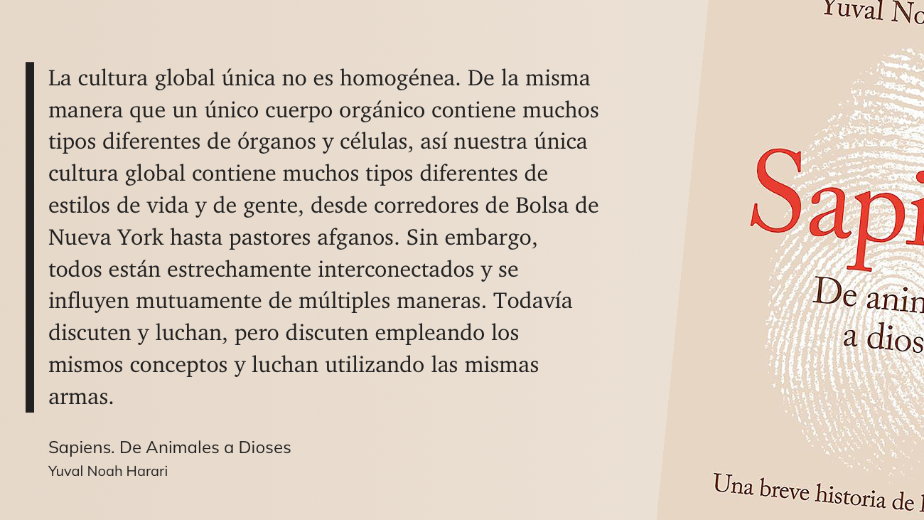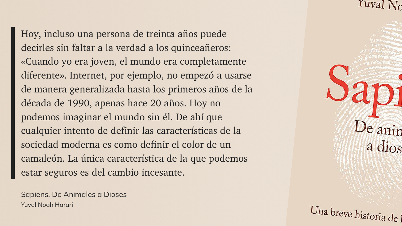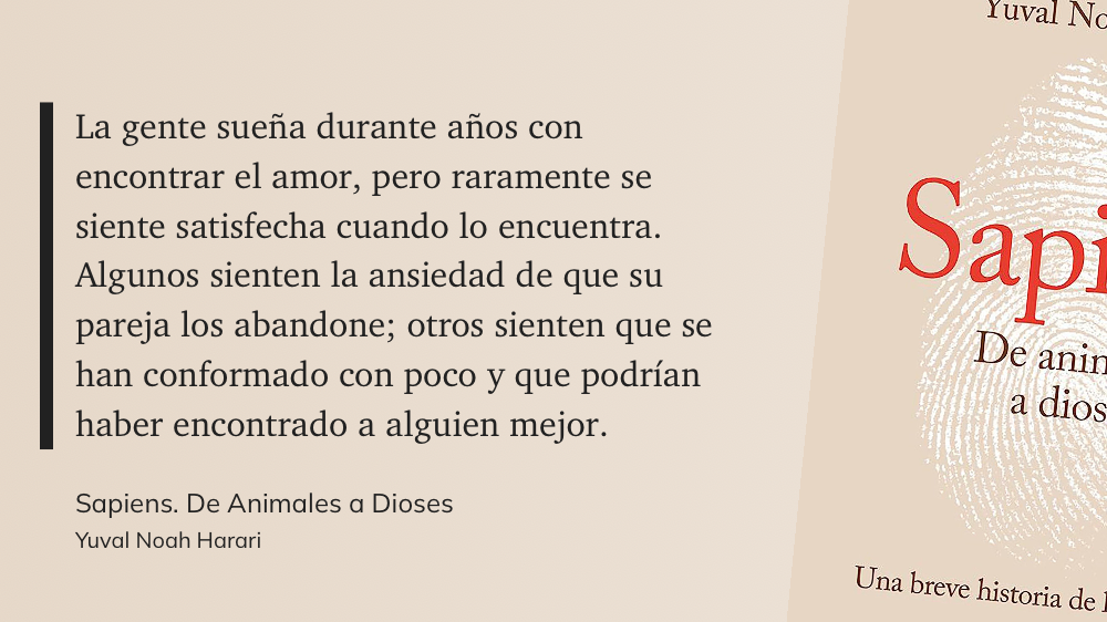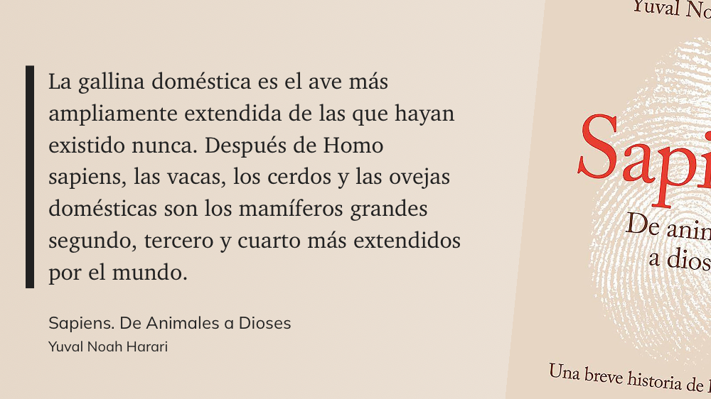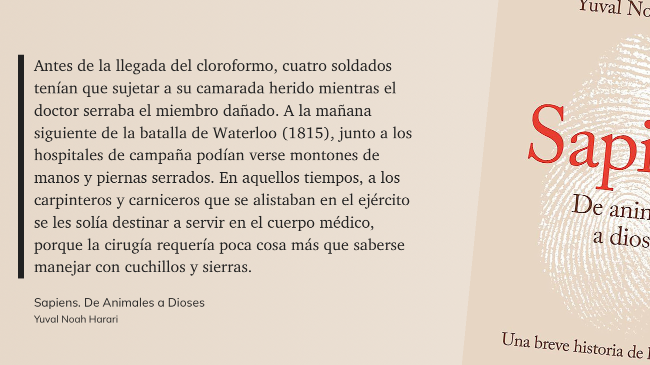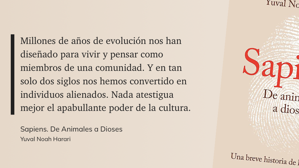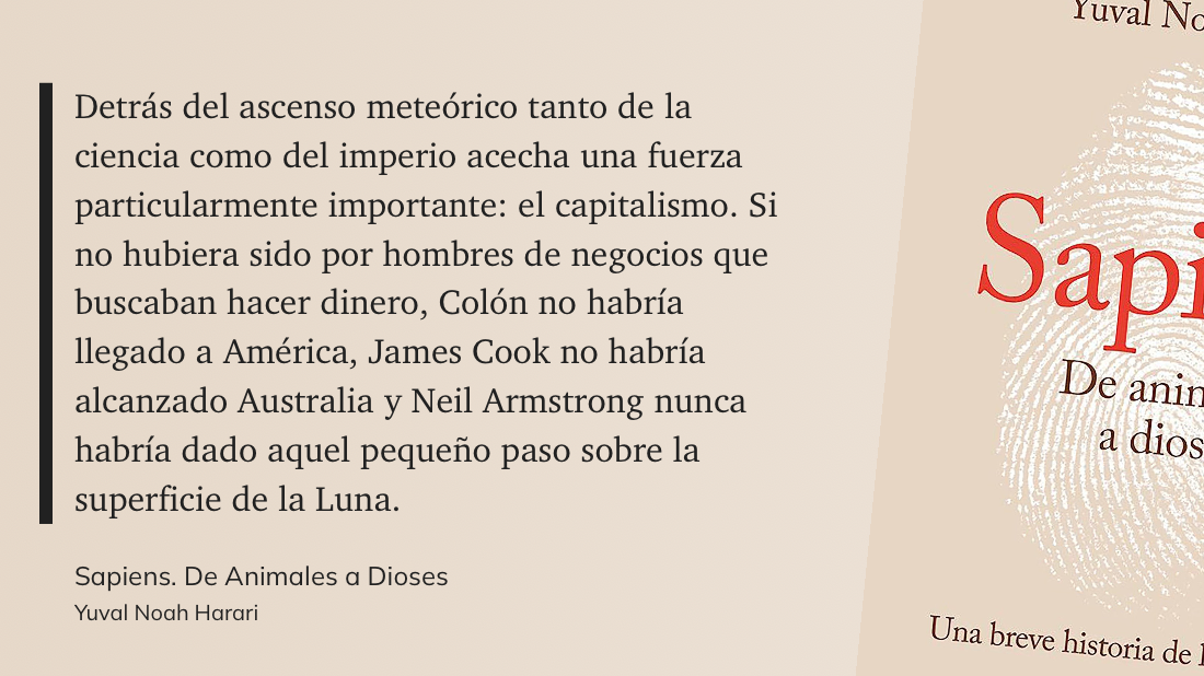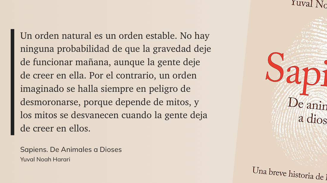 Sapiens, de animales a Dioses: Breve historia de la humanidad. Creo que el titulo es un poco auto explicativo. Es un relato desde los primeros días del ser humano, pasando por la actualidad y dando un pequeño vistazo imaginario a lo que podría ser el siguiente paso evolutivo. Fue uno
