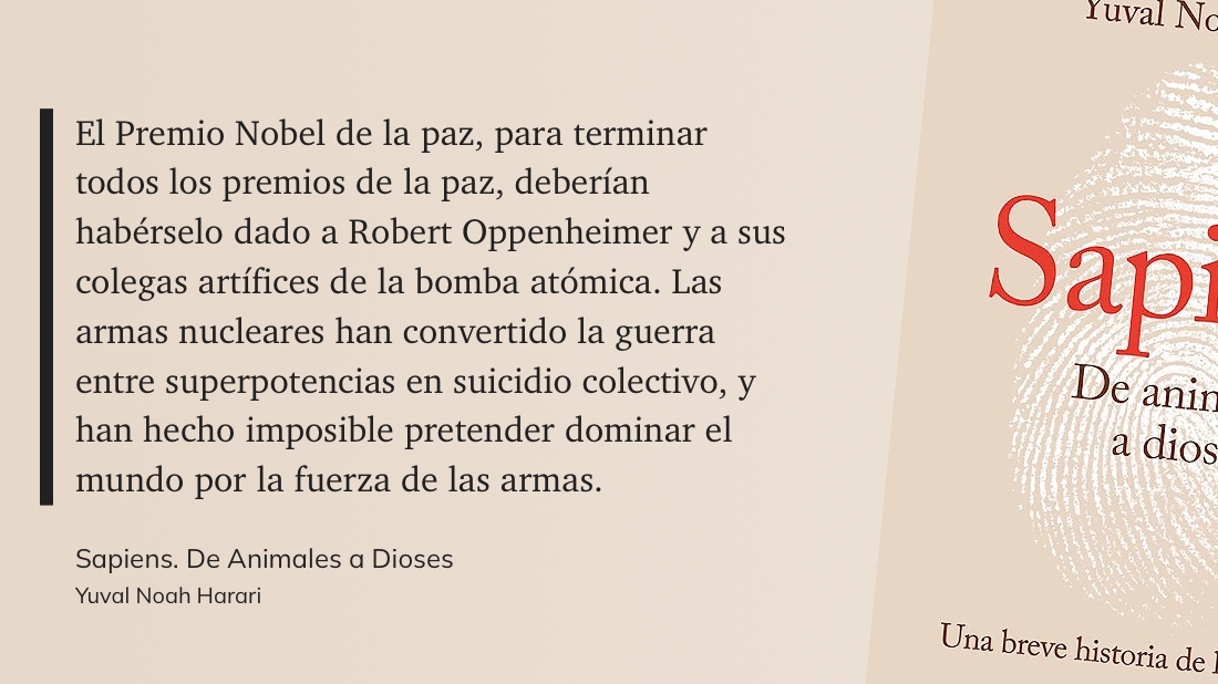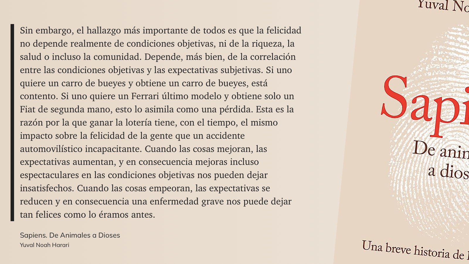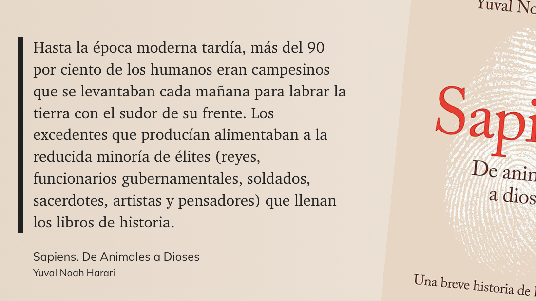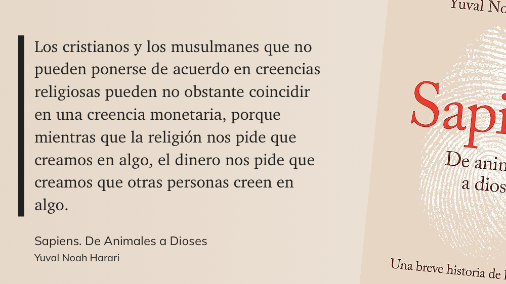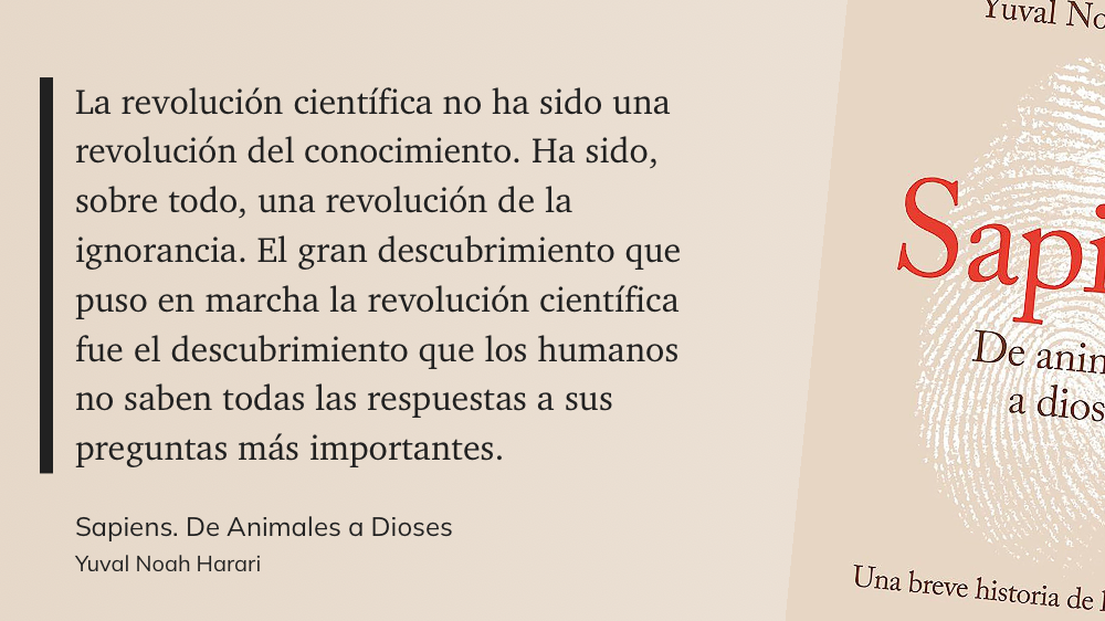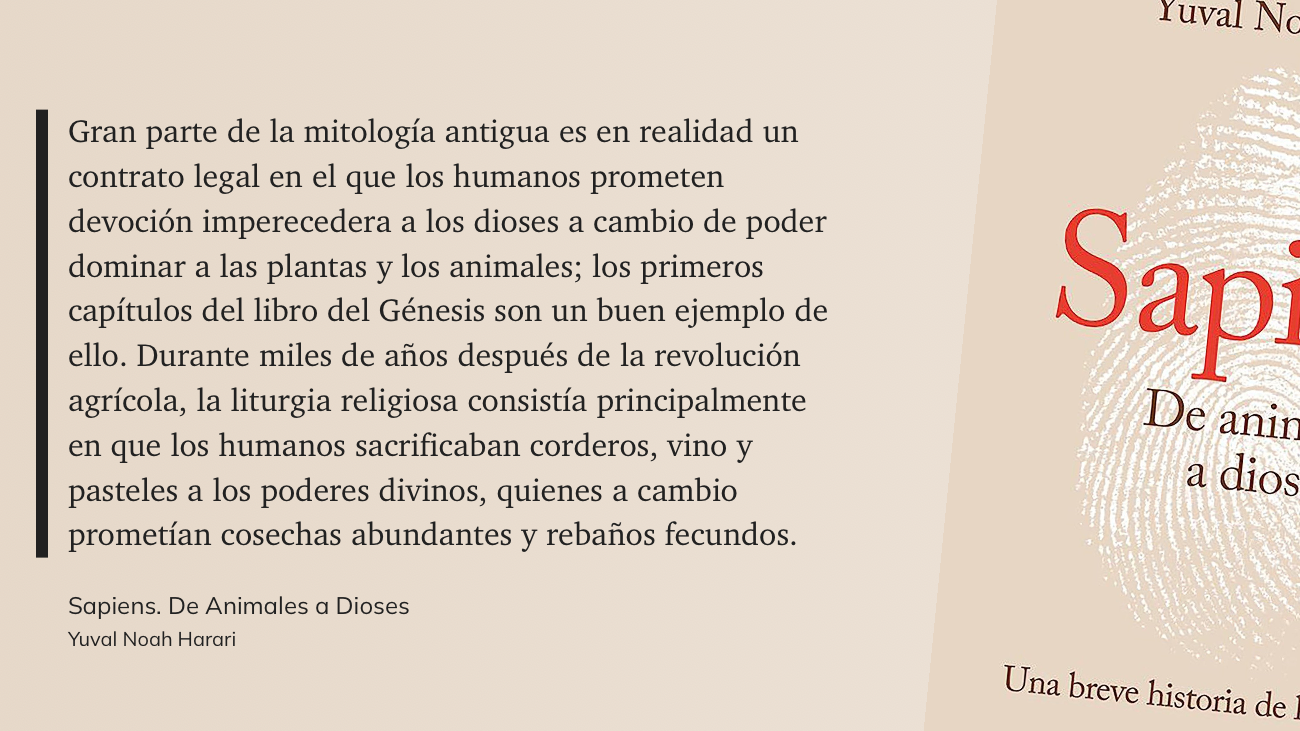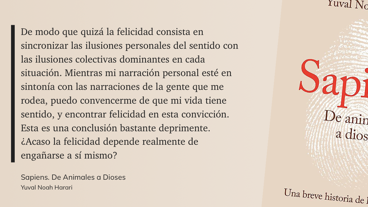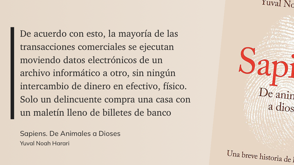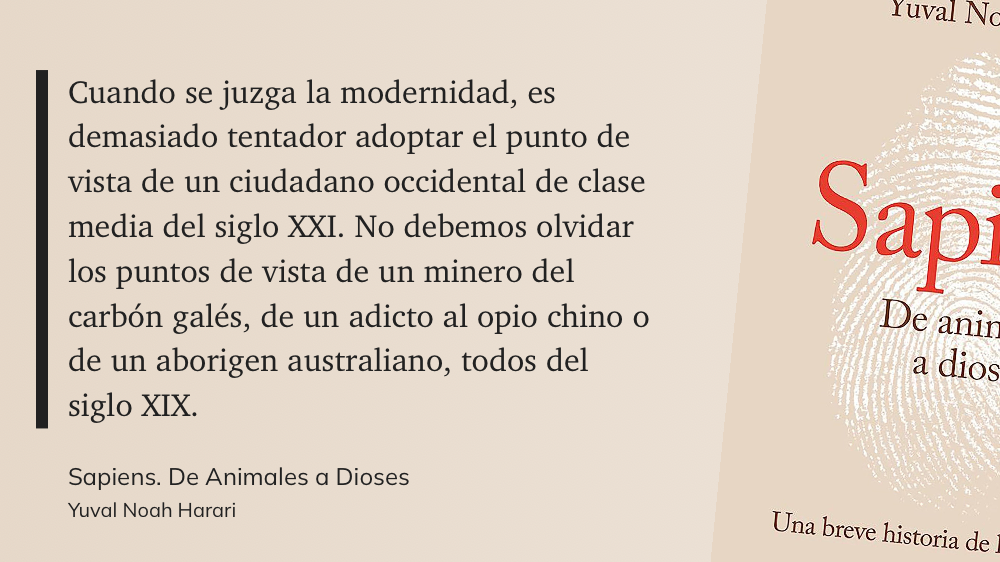 Sapiens, de animales a Dioses: Breve historia de la humanidad. Creo que el titulo es un poco auto explicativo. Es un relato desde los primeros días del ser humano, pasando por la actualidad y dando un pequeño vistazo imaginario a lo que podría ser el siguiente paso evolutivo. Fue uno