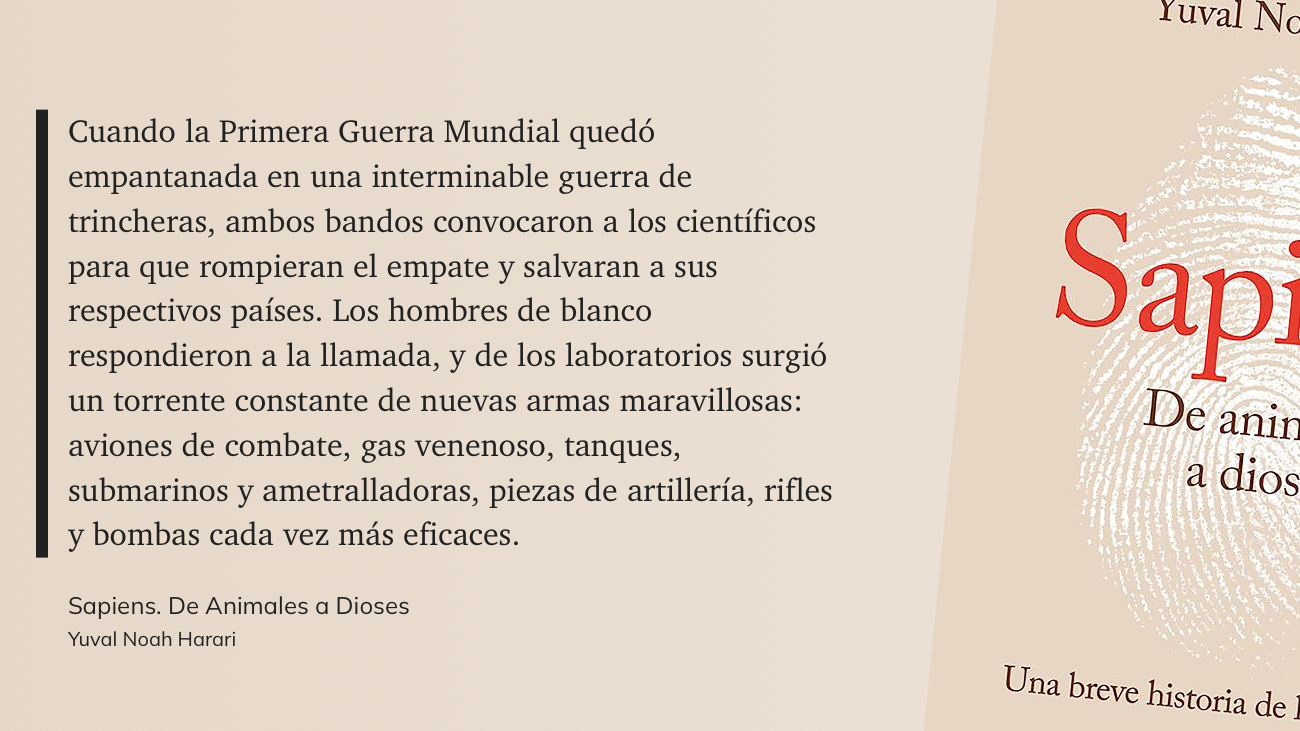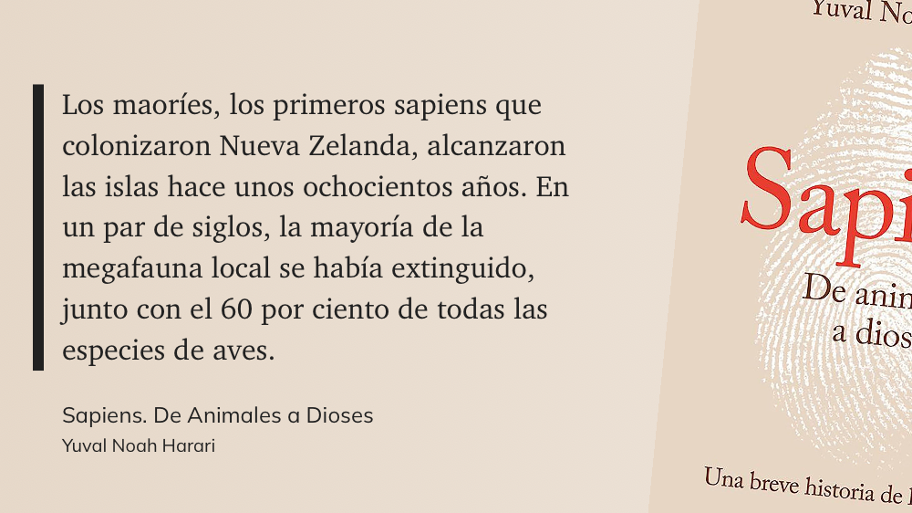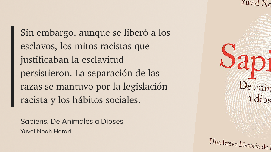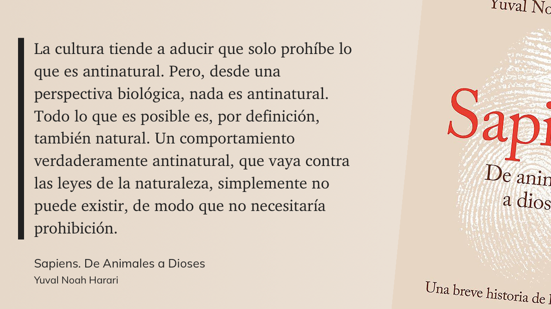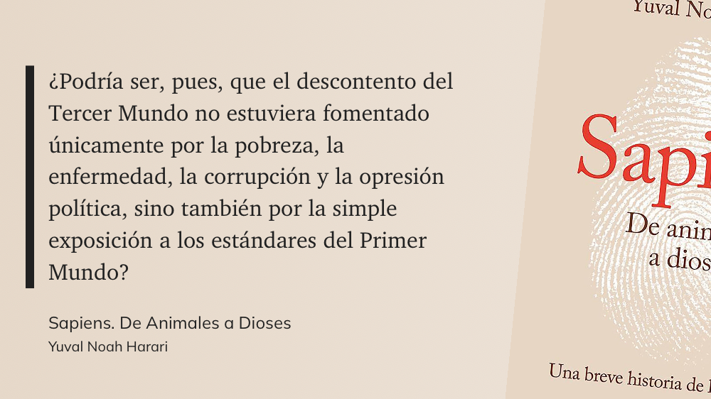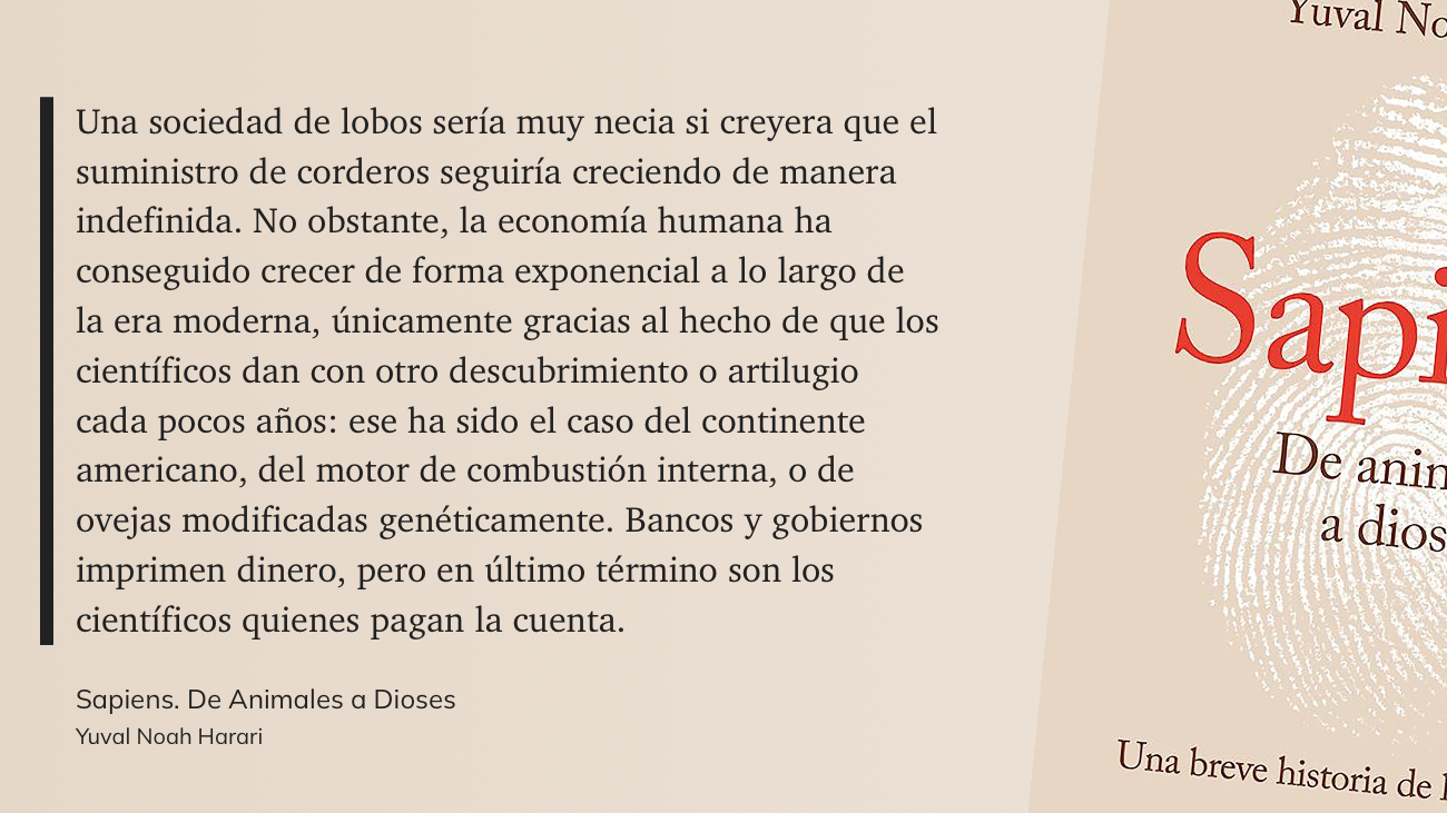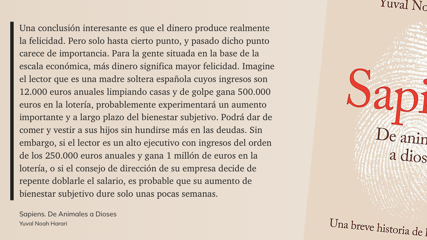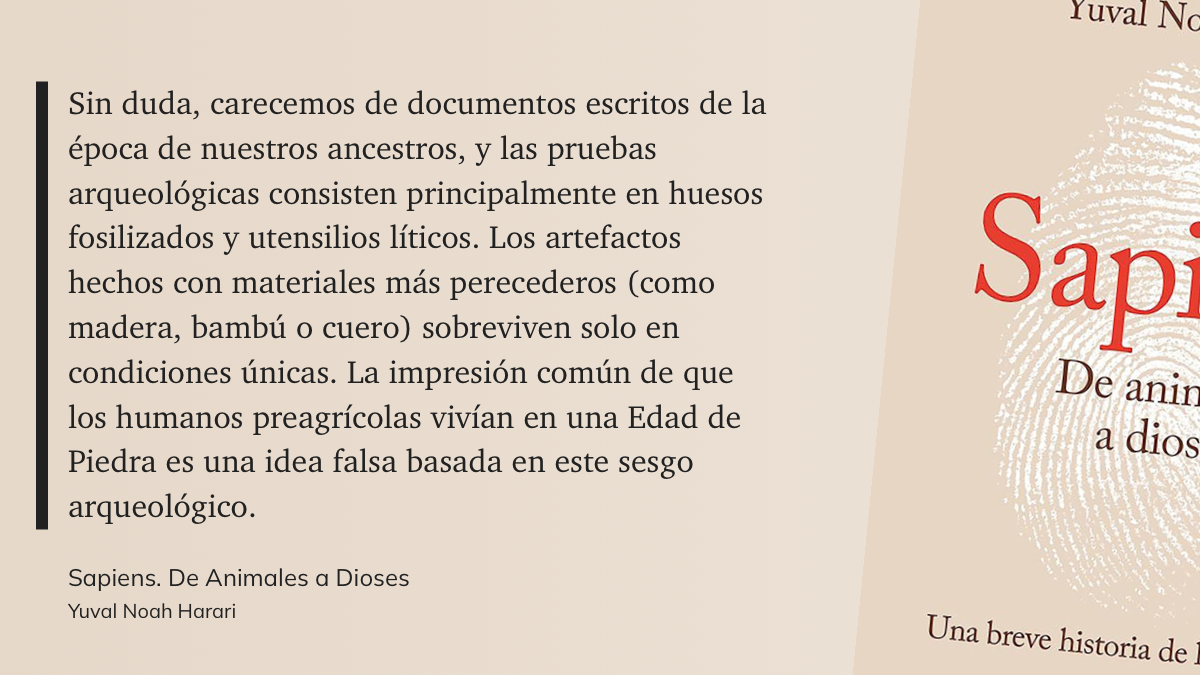 Sapiens, de animales a Dioses: Breve historia de la humanidad. Creo que el titulo es un poco auto explicativo. Es un relato desde los primeros días del ser humano, pasando por la actualidad y dando un pequeño vistazo imaginario a lo que podría ser el siguiente paso evolutivo. Fue uno