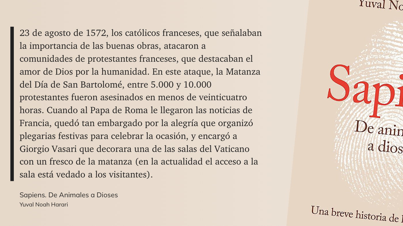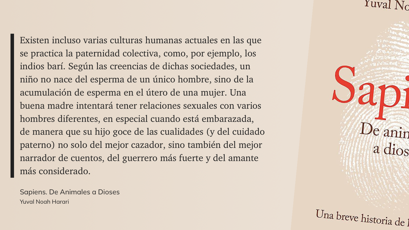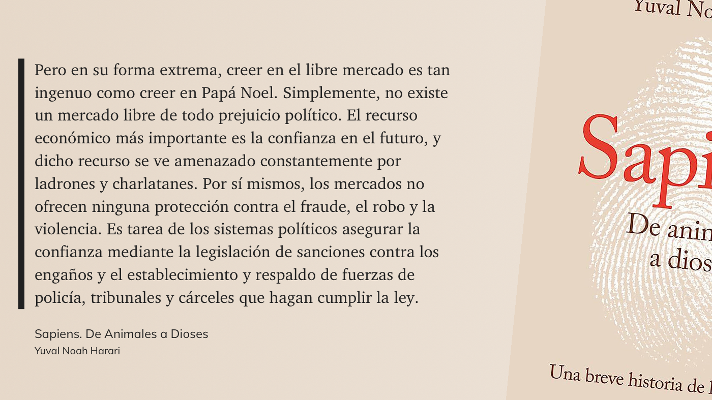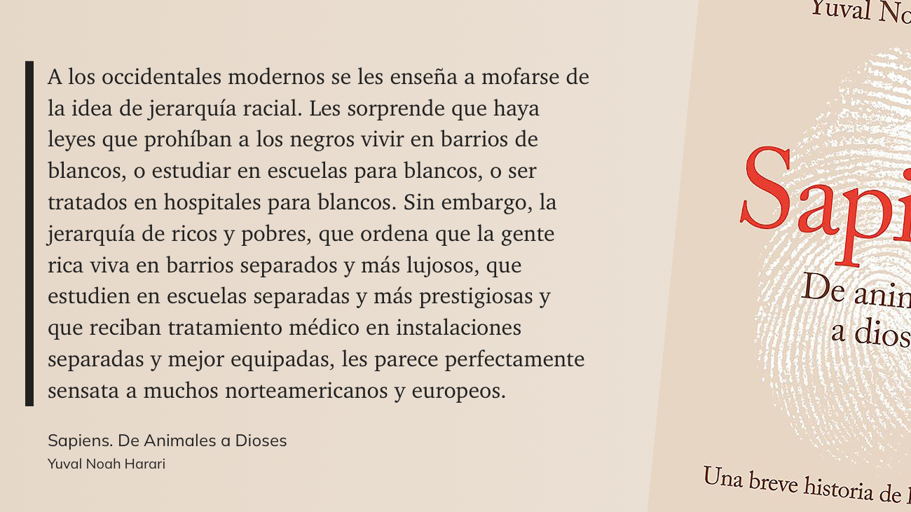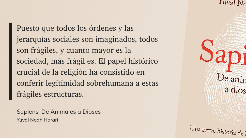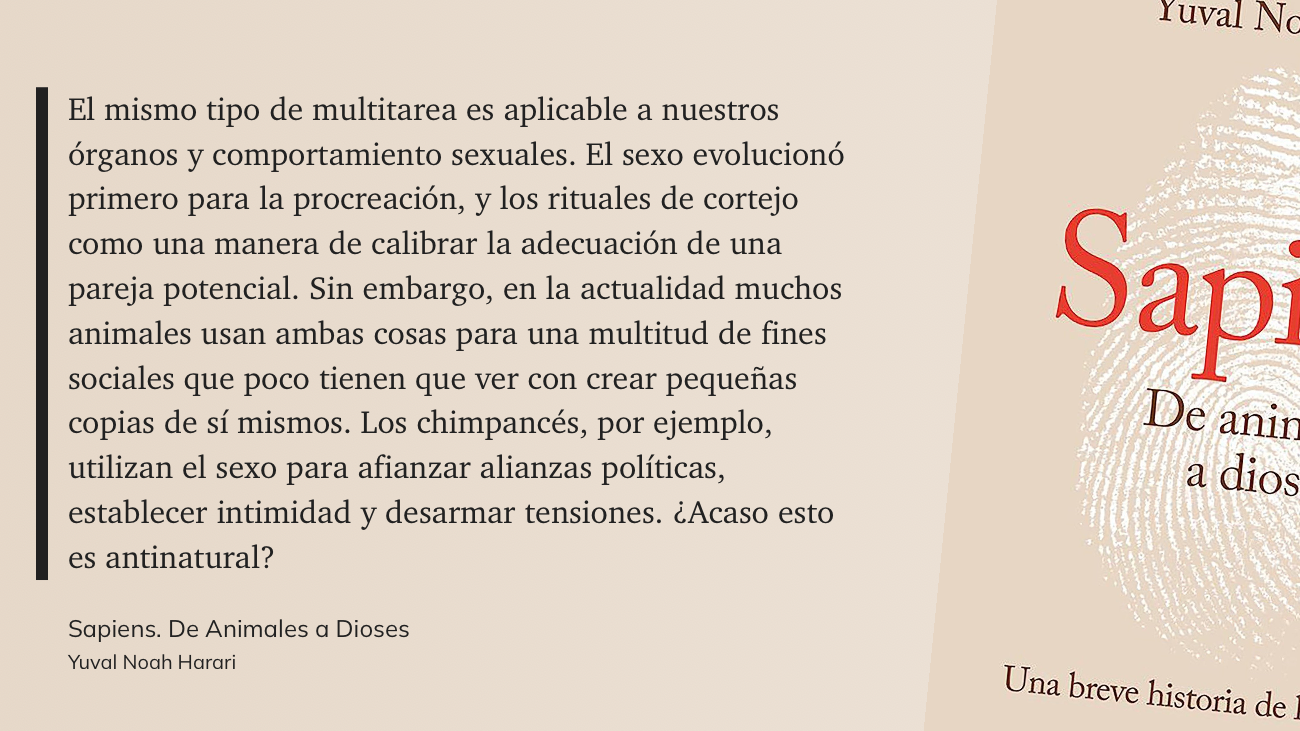 Sapiens, de animales a Dioses: Breve historia de la humanidad. Creo que el titulo es un poco auto explicativo. Es un relato desde los primeros días del ser humano, pasando por la actualidad y dando un pequeño vistazo imaginario a lo que podría ser el siguiente paso evolutivo. Fue uno